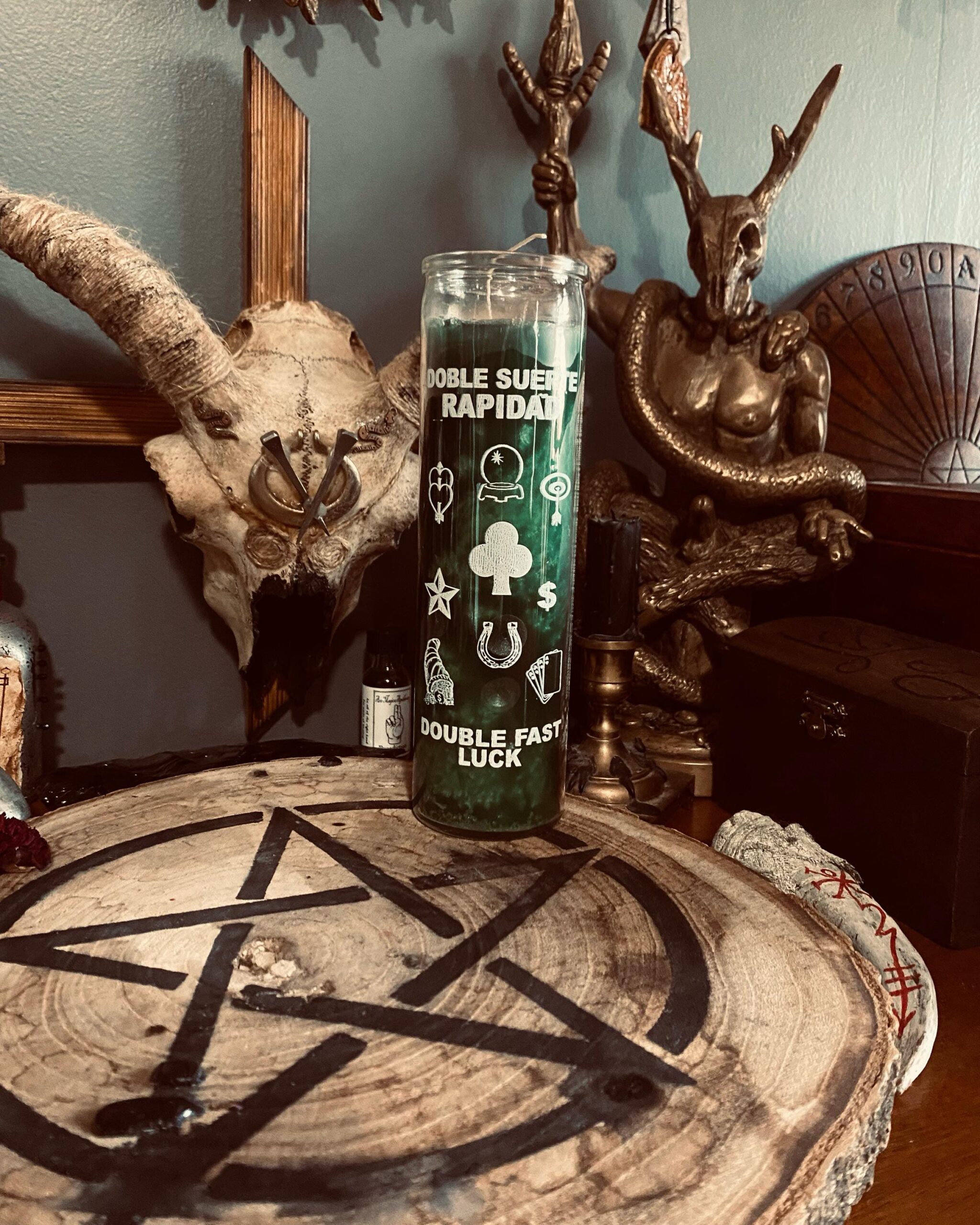 The Double Fast Luck Candle are used in rituals to bring wealth, prosperity, luck, success, and opportunities for the practitioner.
