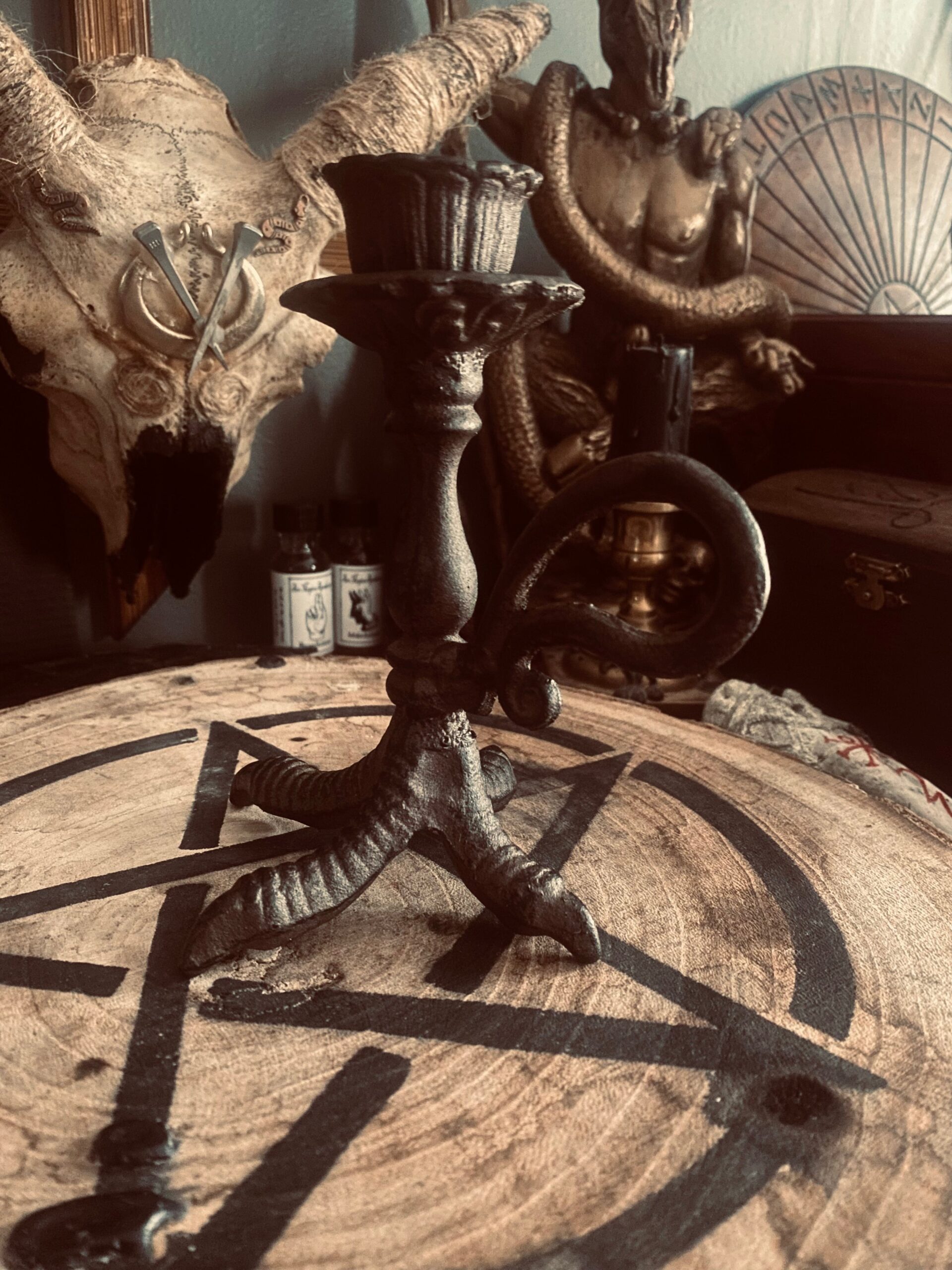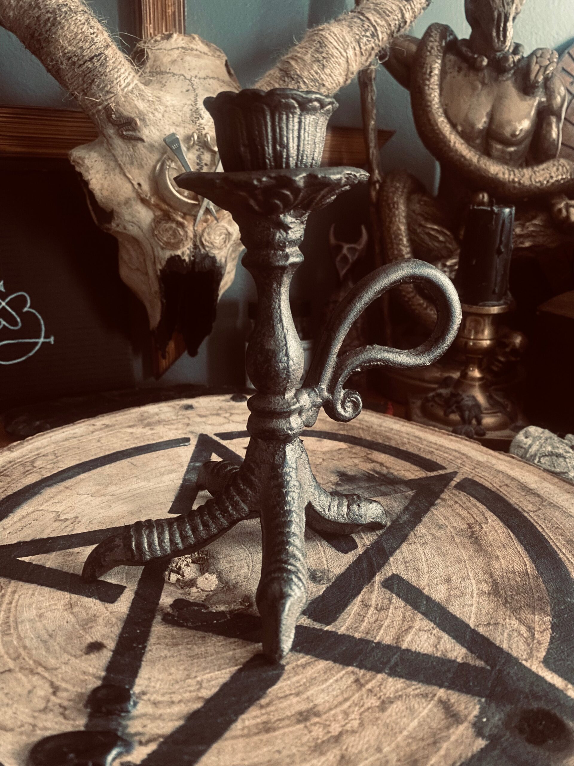 Iron claw taper candle holder. Holds a standard taper candle and heavy and iron. Perfect for any Witch at their altar.