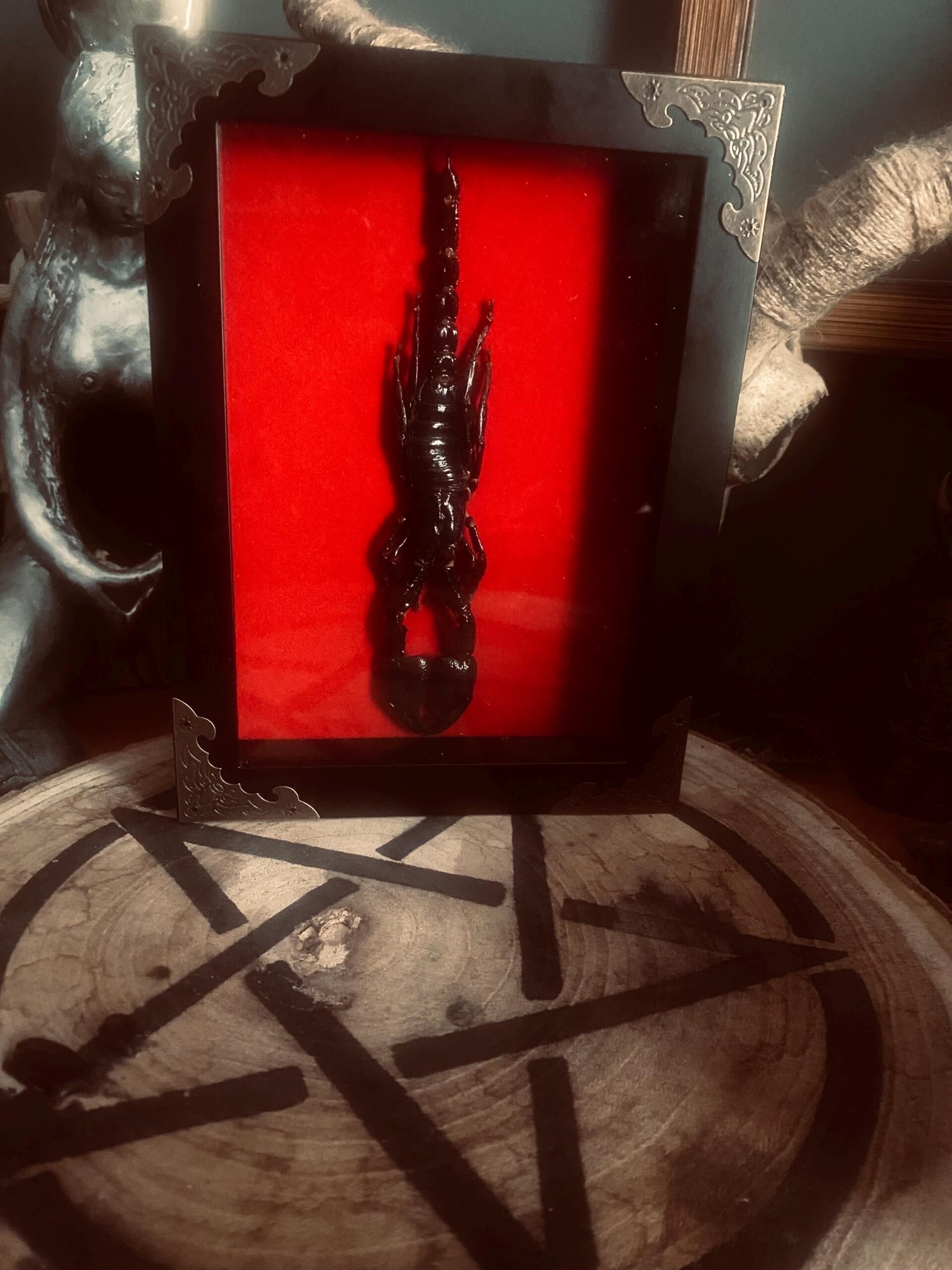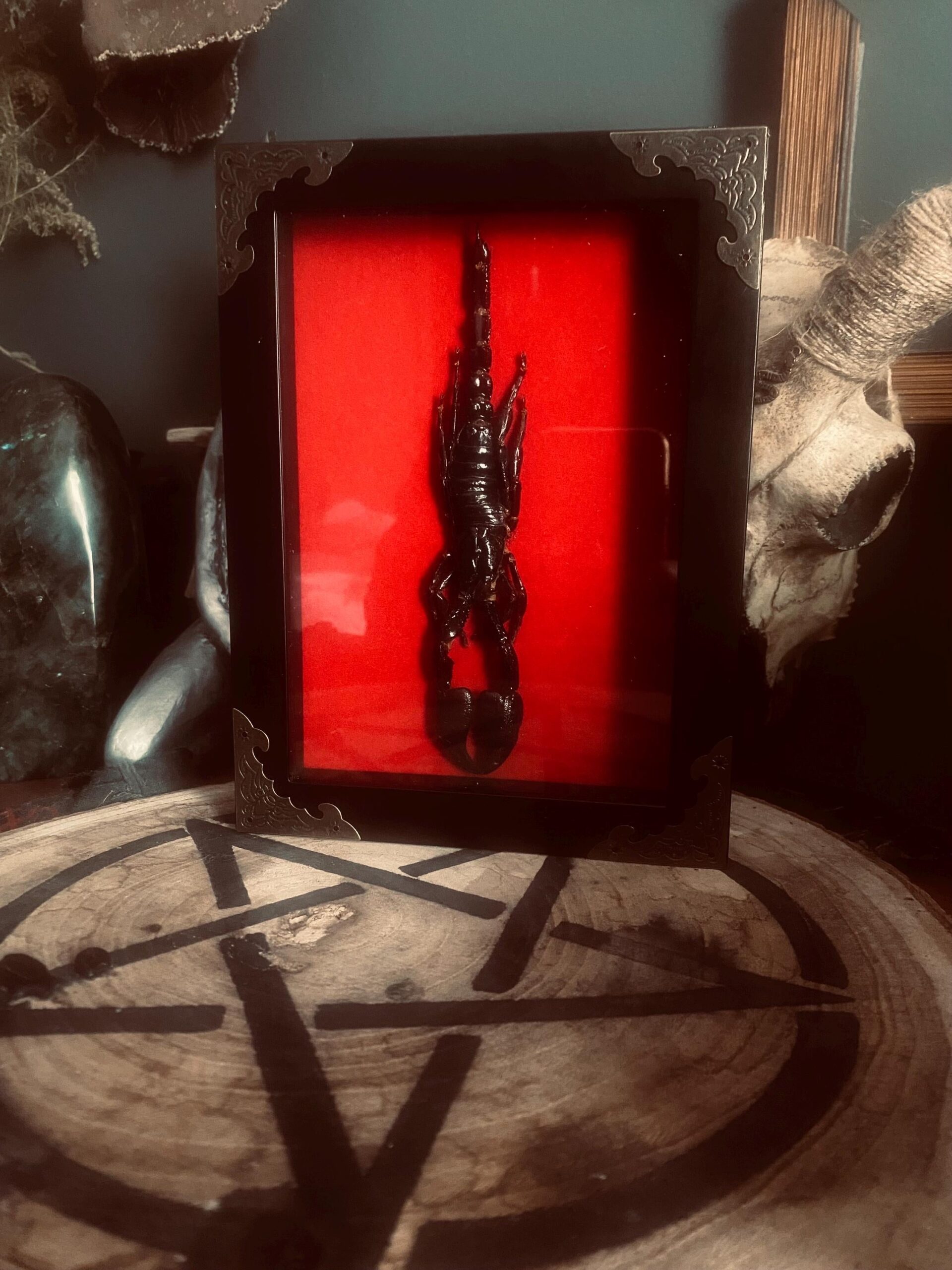 Tags: black wall art, curios, insects, scorpion, shadow box art, taxidermy, witch, witch decor, witchcraft, witchy things