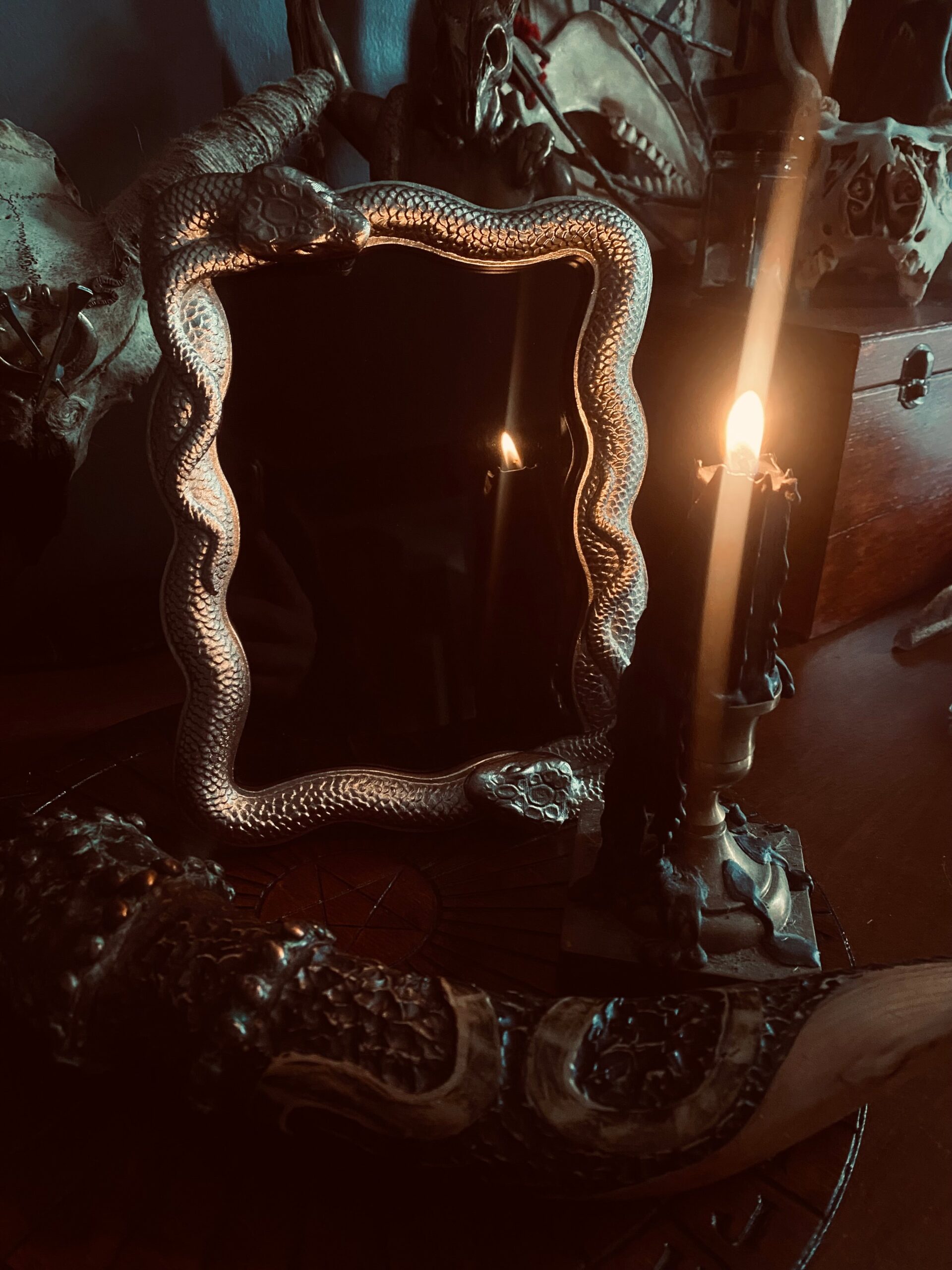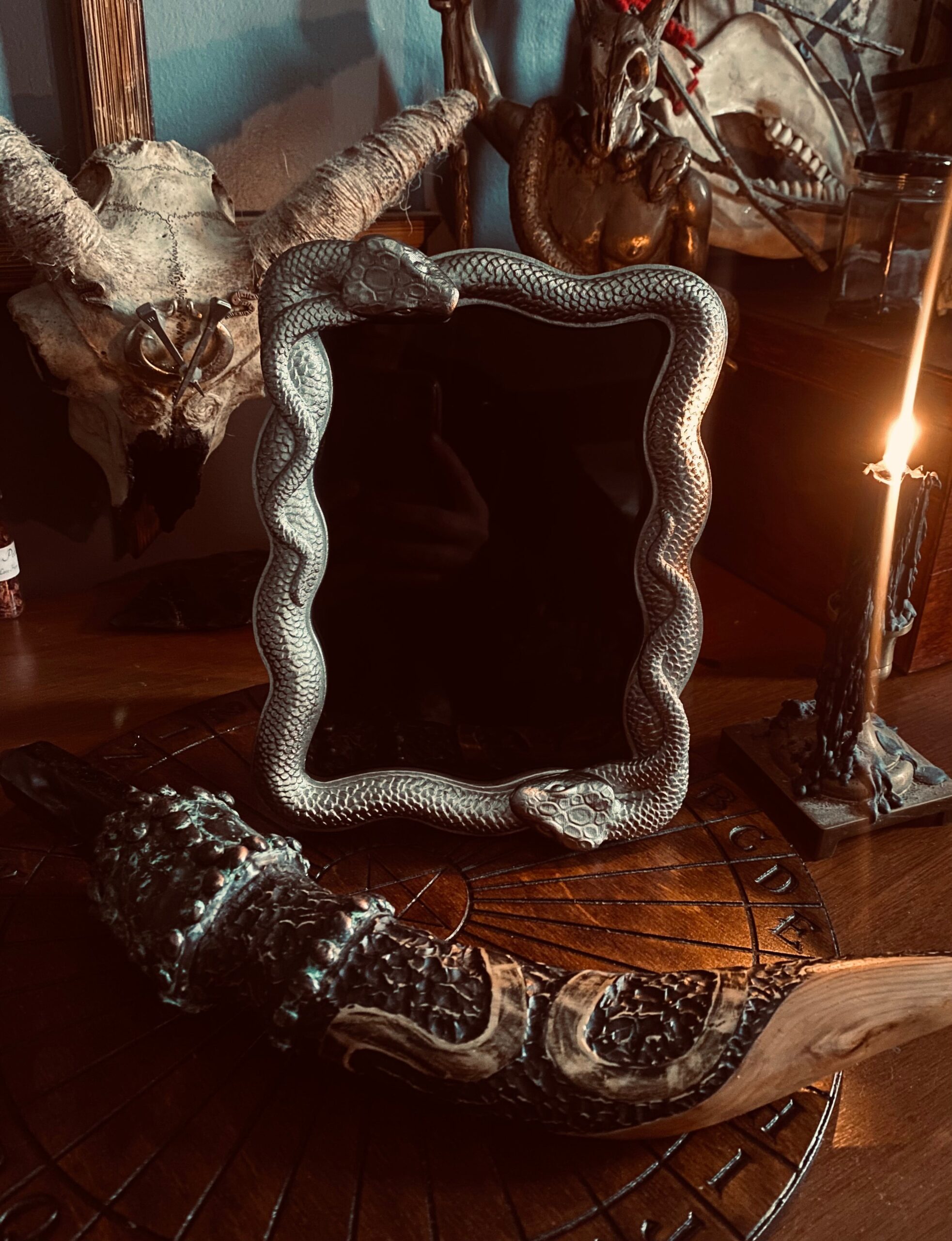 Home Handmade Witch Decor Scrying Snake Mirror