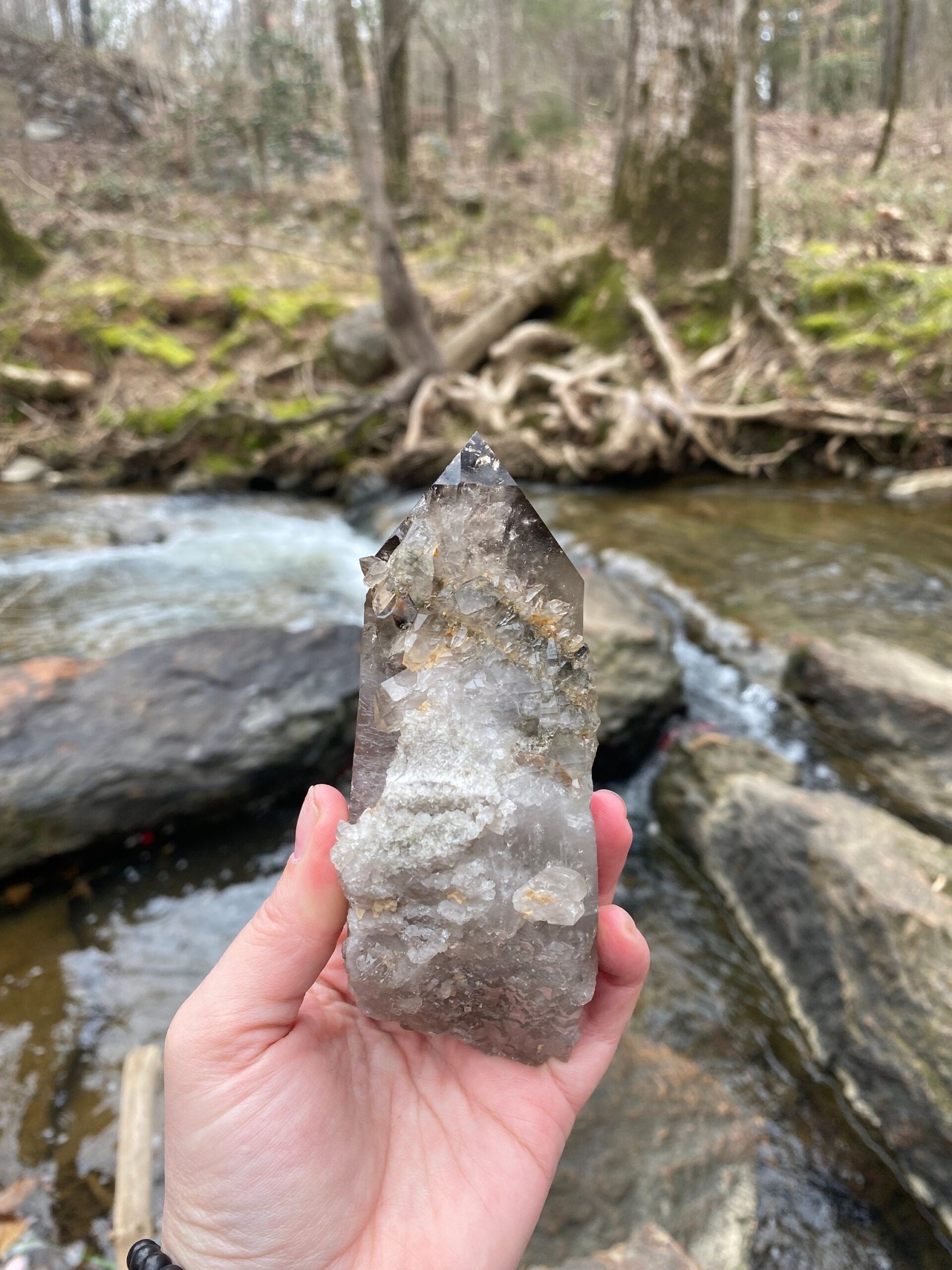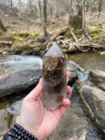 This is a smokey quartz crystal that’s about 15.8 oz and about 6 1/2 inches long. The smokey quartz crystal mirroring its smokey hue has a spiritual meaning which represents grounding, letting go, and surrounding old wounds. It’s a great protection stone and a transformative stone. It is excellent at elevating moods, relieving stress, and negative emotions. It is also very grounding and physically it may help ease dis-eases occurring around the lower torso. Associated around the root chakra. To see more photos and videos, please visit my Instagram profile at “backwoodsmagickstudio.