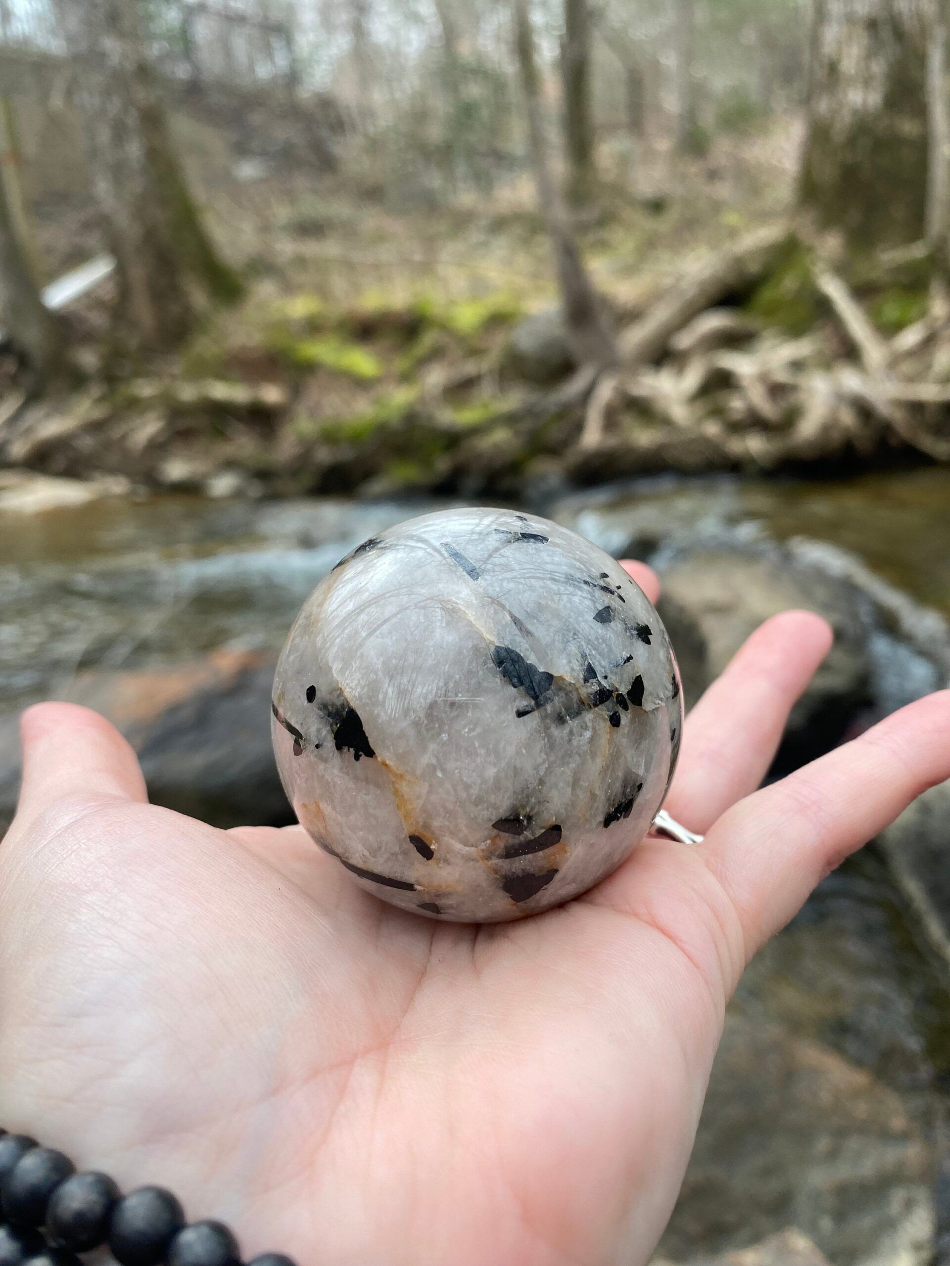 This is tourmaline quartz crystal measuring at 55mm. The tourmaline quartz has been said to be a stone of reconciliation, a stone that fosters compassion and cool headedness, radiates the energy that attracts money, healing and friendship, and is used for grounding purposes, to stabilize, and reaffirm our earth roots. For more photos and videos, please visit my Instagram profile at “backwoodsmagickstudio”.