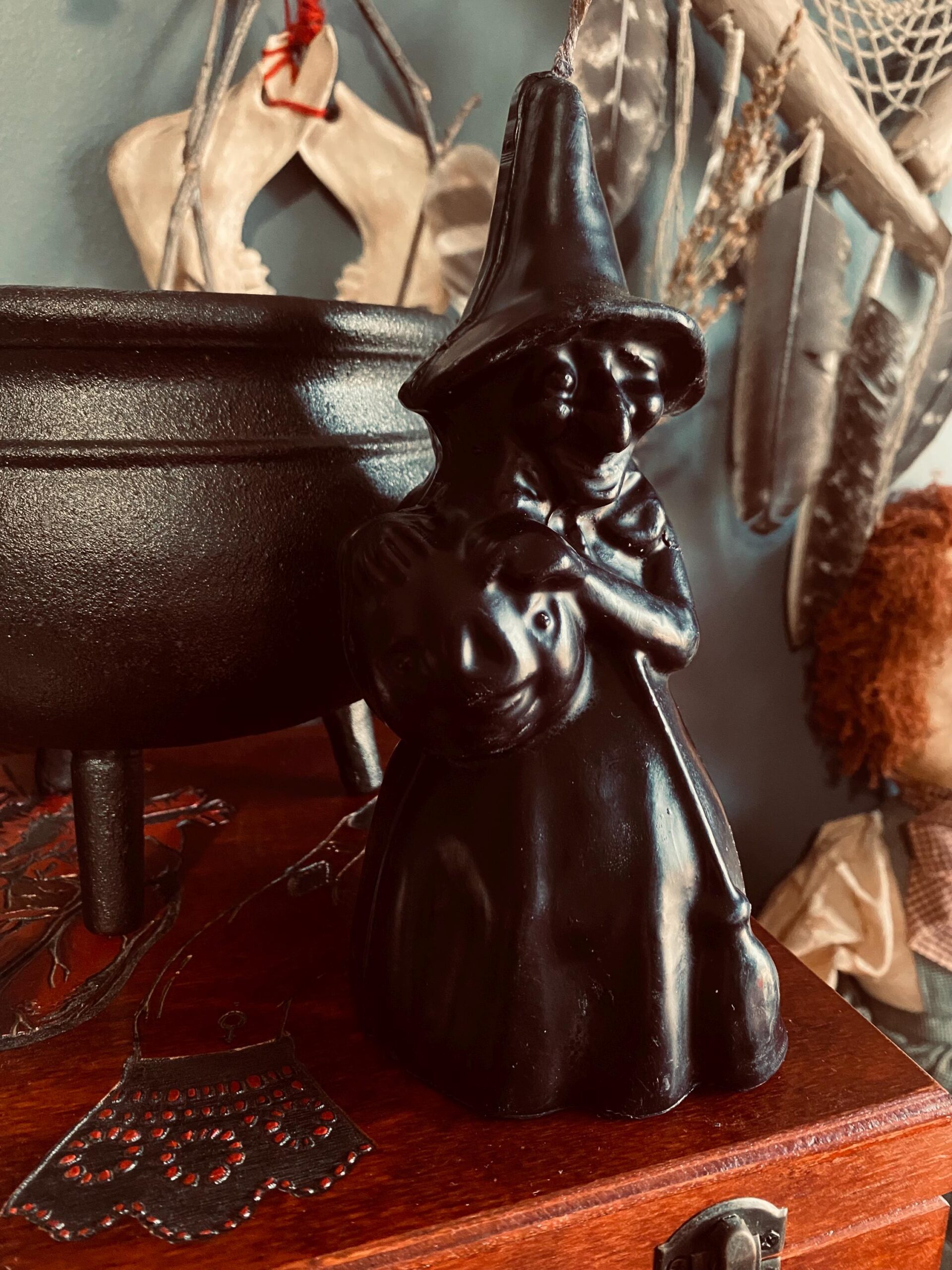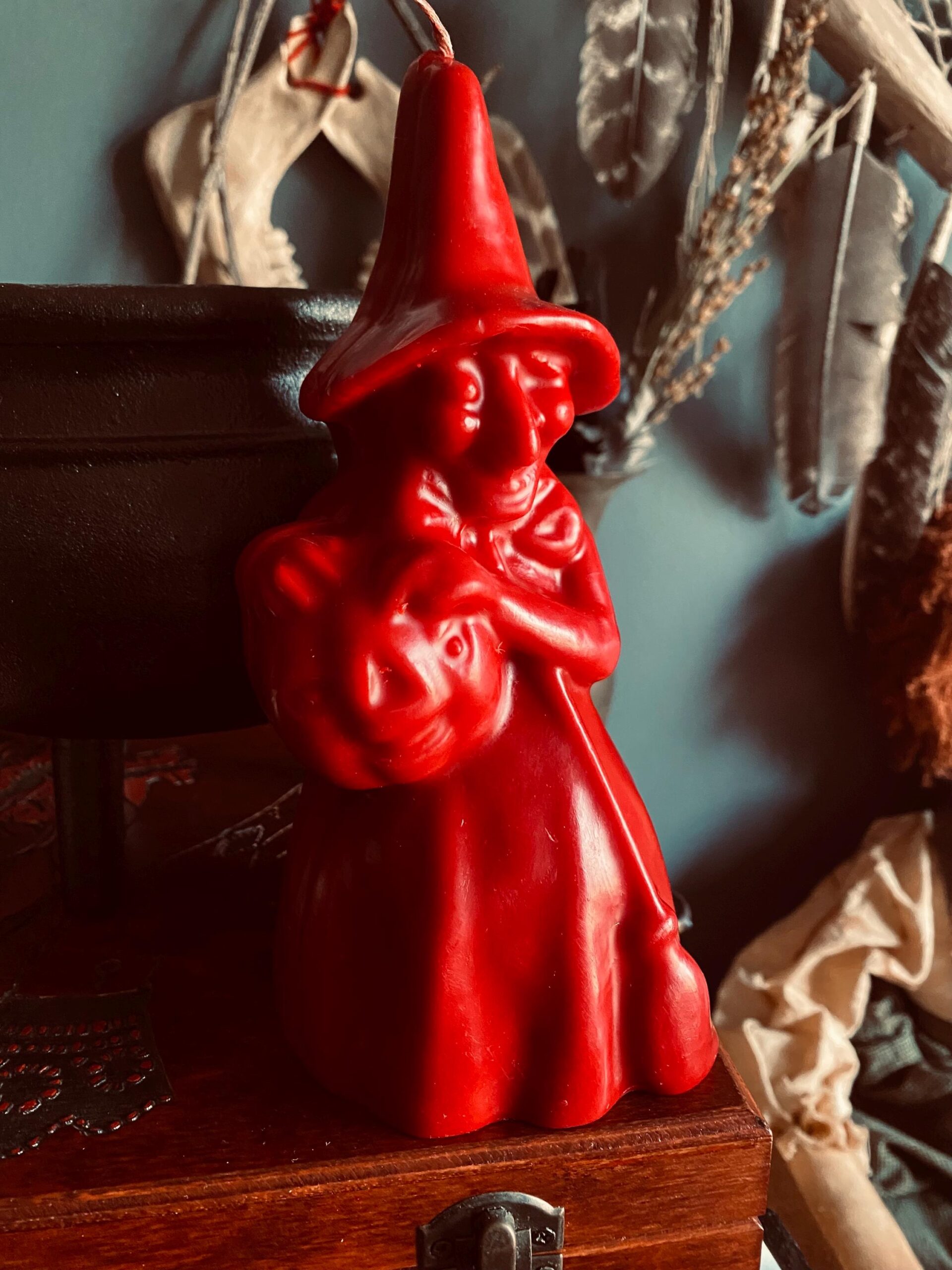 The red witch candle is typically burned spiritually to represent passion, energy, power, courage, and protection, often used in rituals related to love, desire, motivation, or situations where a strong burst of energy is needed. A black witch candle is typically burned spiritually to absorb negative energy, banish unwanted influences, provide protection, and facilitate transformation or endings.