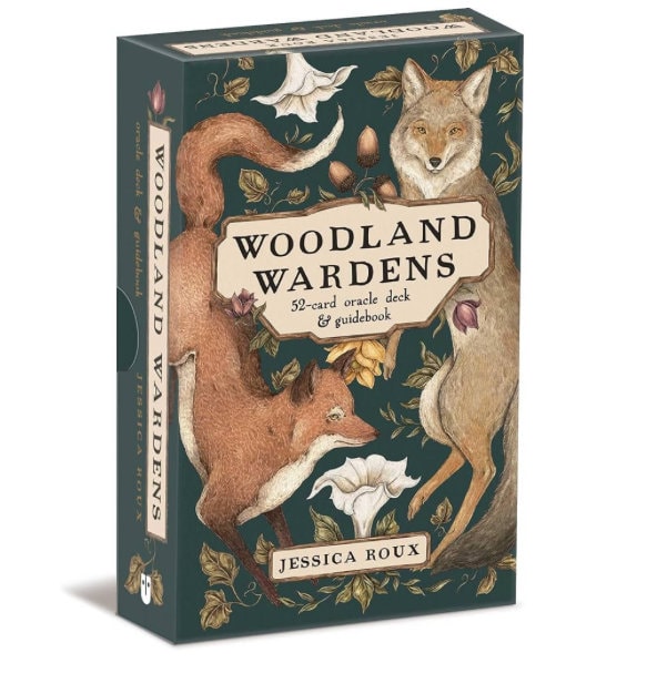 Drawing on mythology, folklore, and literature, each card in the Woodland Wardens deck features an animal-plant pairing accompanied by a distinct and thoughtful message: the hare and the oak; the finch and the peach; the hawk and the thistle. Each unique combination, brought to life in artist Jessica Roux’s detailed, historically evocative style, transports seekers to another time and place, offering insight, guidance, and an invitation to reflect on the natural world.