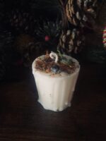 Yuletide Blessing votive candles are handmade with a natural soy wax and a scent of cinnamon fragrance. Each one is poured and dripped with love and Magick and fixed with herbs. Each votive candle contains herbs of fresh cedar with berries, pine needles, juniper berry, star anise, cinnamon bark, and selenite crystal. Burn in a fire proof container.